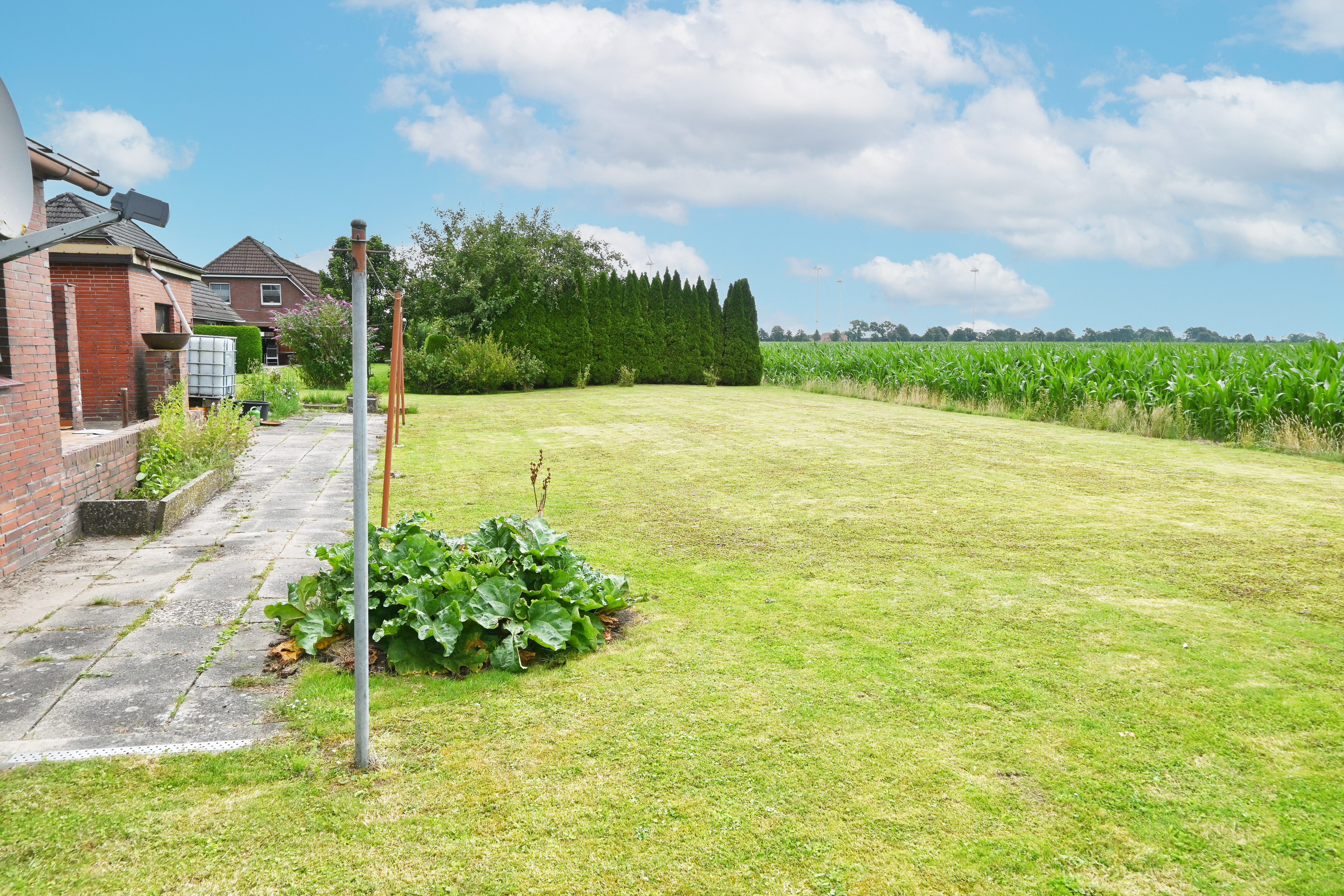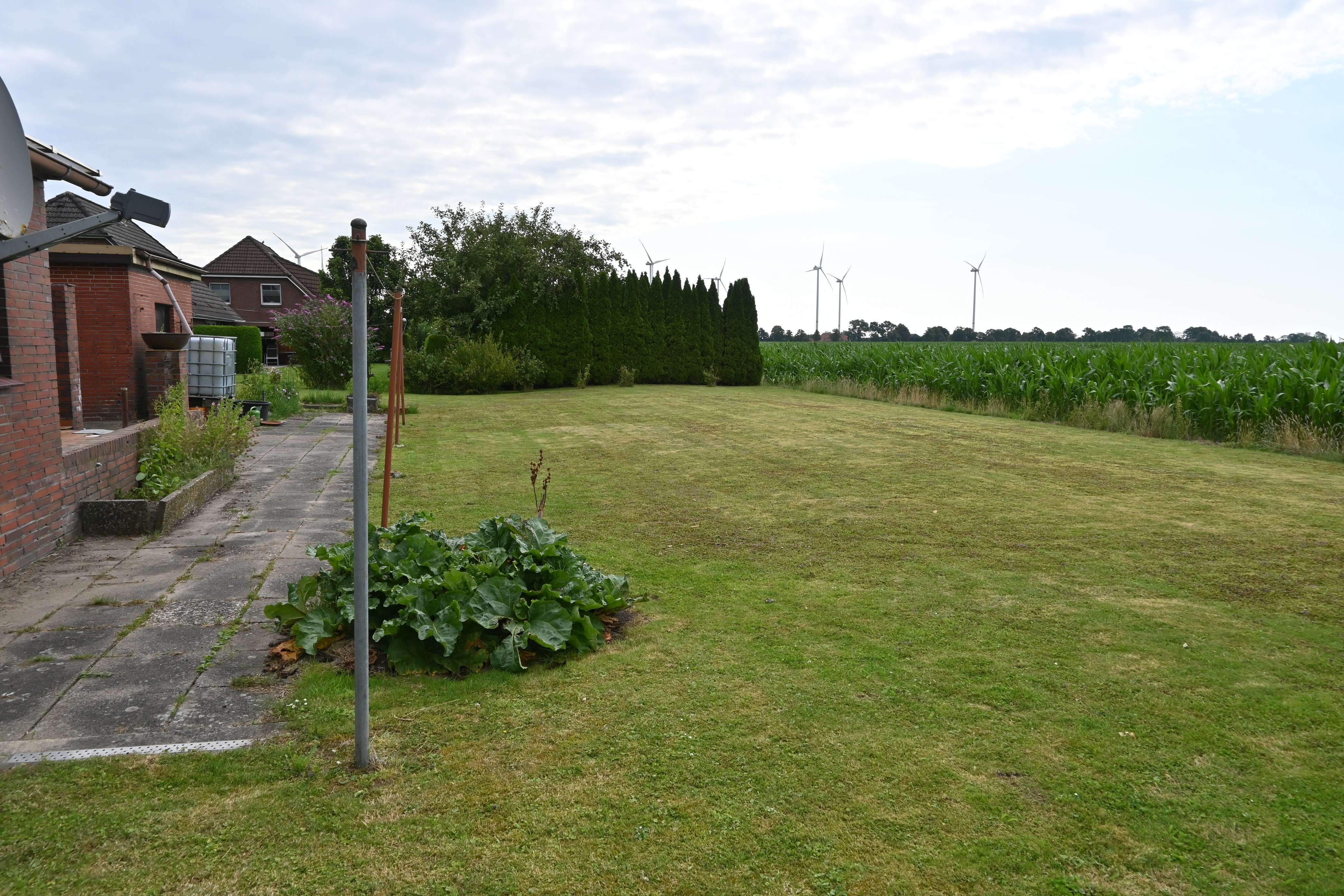 Das große 1.126 m² Grundstück ist eine wahre Freude für Gartenliebhaber, die sich verwirklichen wollen. Hier ist reichlich "Raum" für Gedanken für eine neue Gartengestaltung. Das ursprüngliche Grundstück hatte eine Fläche von 804 m². Im Jahre 1997 wurden zusätzliche noch 322 m² erworben. Für diese 322 m² Grundstück gibt es eine beschränkte persönliche Dienstbarkeit (Baubeschränkung).