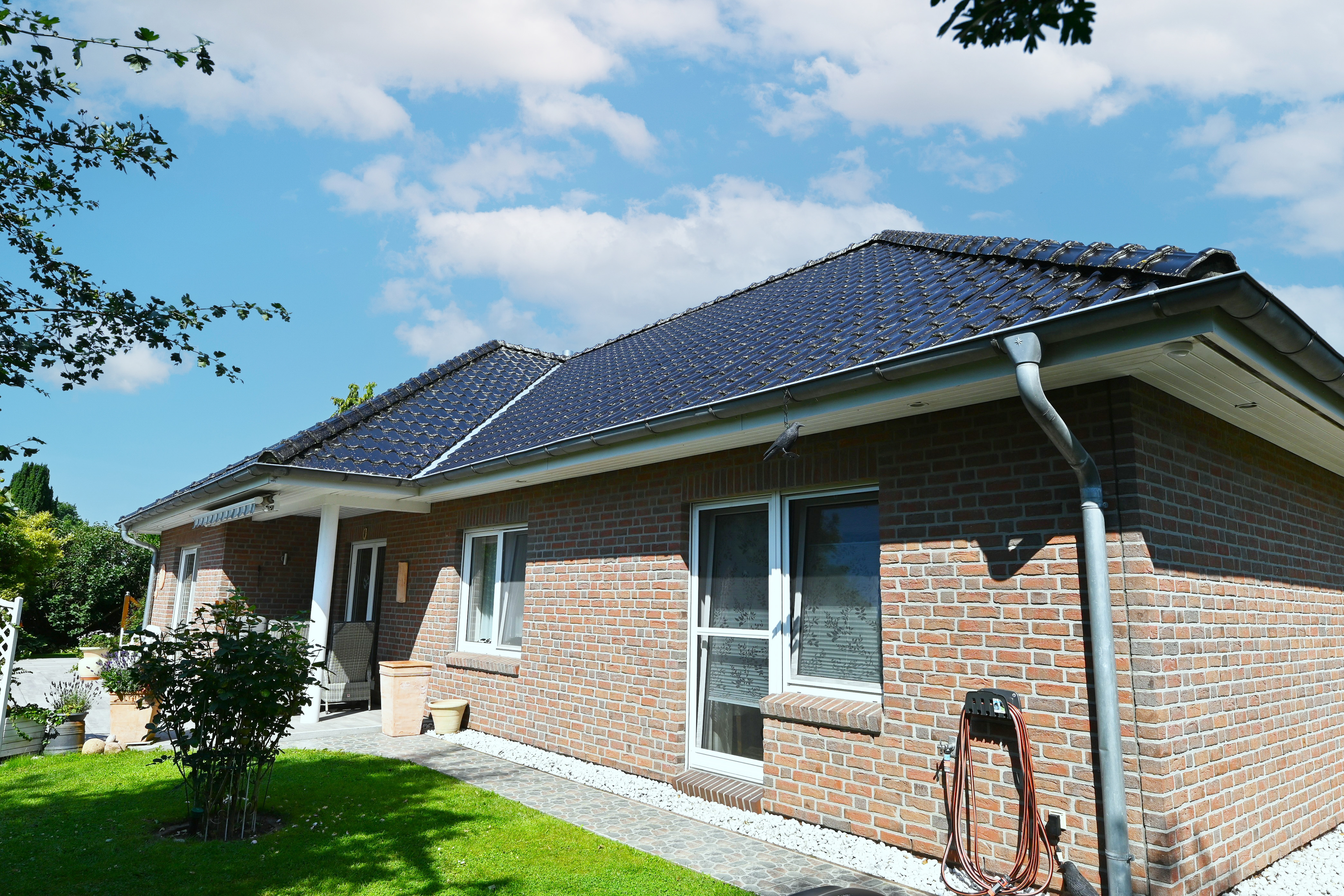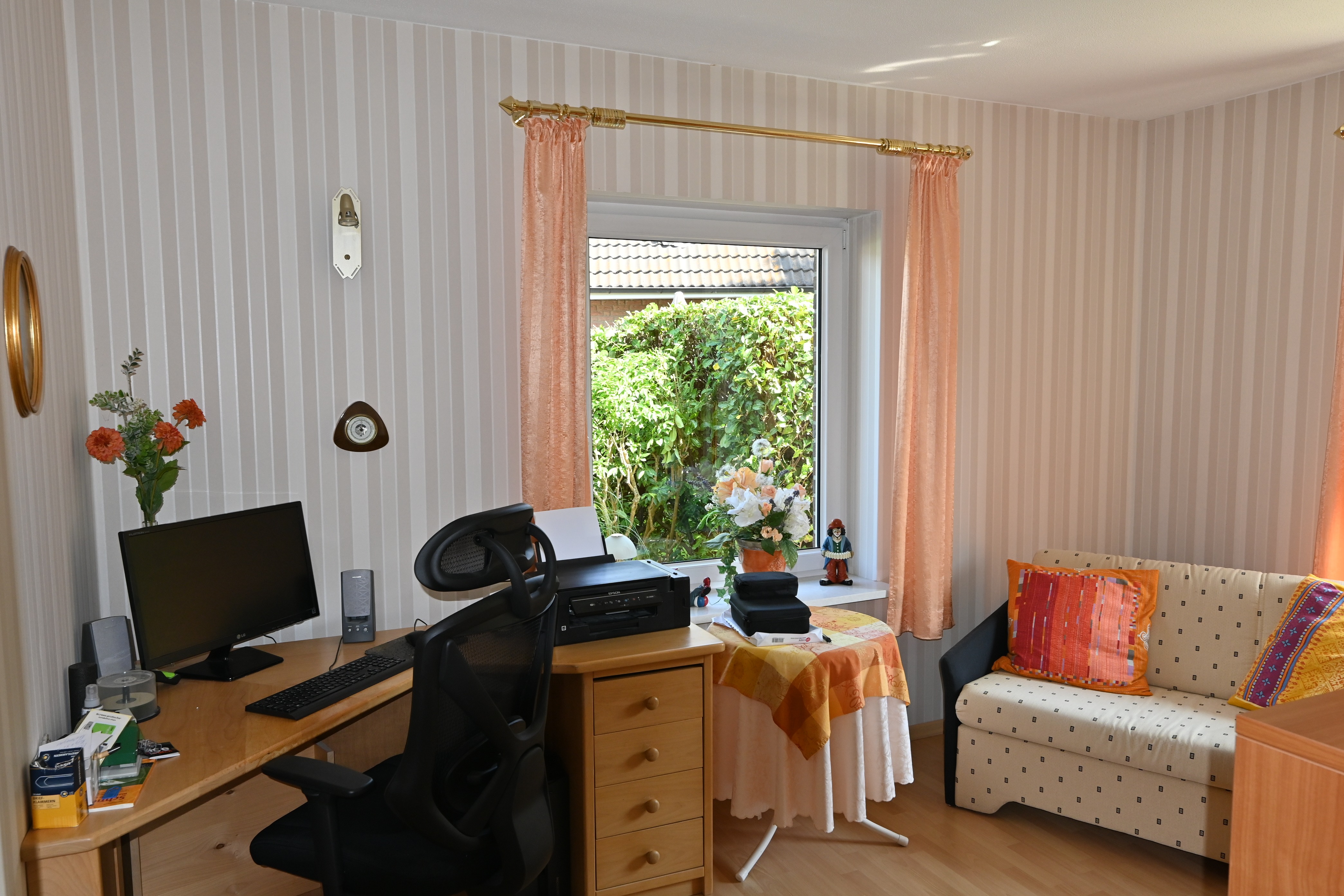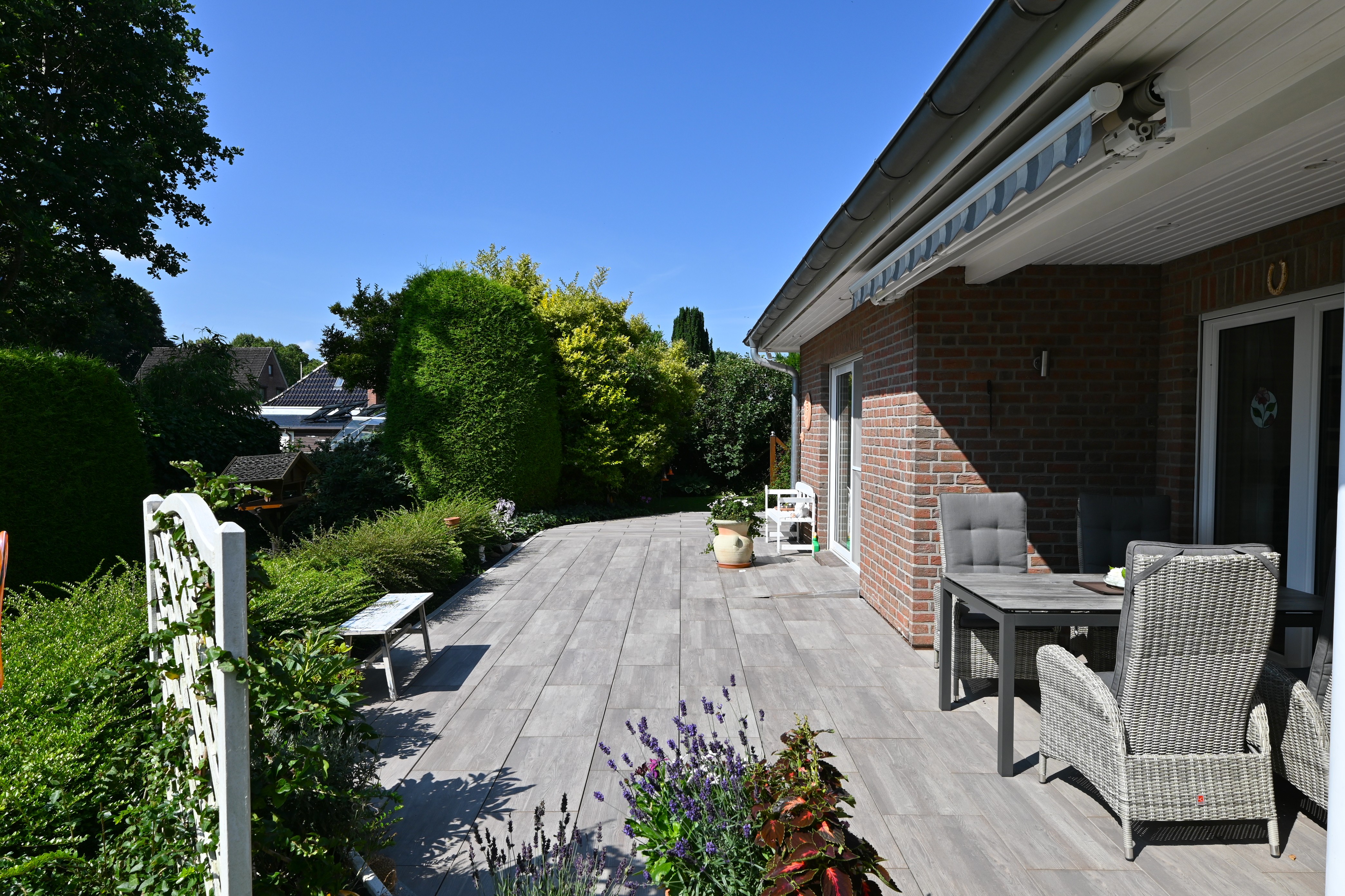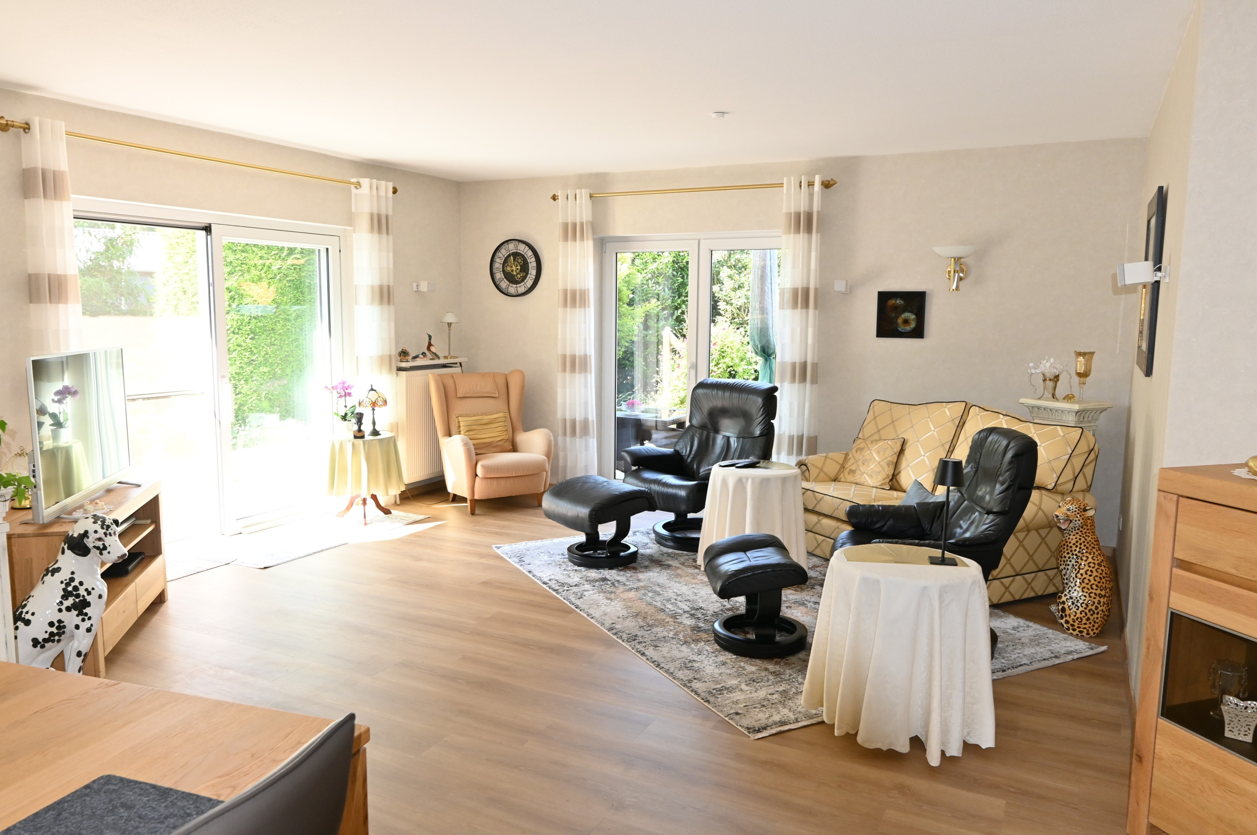 Der Bungalow wurde im Jahr 2000 in massiver Bauweise als Niedrigenergiehaus erbaut. Nach den heutigen gesetzlichen Bestimmungen zählt das Haus nicht mehr zu den Niedrigenergiehäusern. Das Haus befindet sich in einer ruhigen Sackgassenlage, sticht sofort durch die schöne Bauweise ins Auge wenn man in die Straße reinfährt. Die Wohn-/Nutzfläche von 146,56 m² bietet reichlich Platz für die Familie. Egal ob jung oder alt, hier spielt sich das Leben auf nur einer Etage ab. Das Haus ist rollstuhlgerecht und hat Fußbodenheizung in Bad, Gäste-WC, Diele/Flur, Wohnzimmer, Essbereich, Küche sowie Hauswirtschaftsraum. Zusätzlich gibt es dann noch Wandheizkörper in den einzelnen Räumen. Alle Fenster lassen sich über elektrische Außenrollos abdunkeln. Diese können pro Raum gesteuert oder aber über eine Zeitschaltuhr geregelt werden. Weiterhin lassen sich die Außenrollos des Hauses vom Schlafzimmer aus hoch und runter fahren. Ca. 100 m entfernt befindet sich ein kleiner Spielplatz. Das 902 m² große, liebevoll angelegte Grundstück bietet reichlich Platz und Raum für Gartenliebhaber/innen. Das große Doppelcarport bietet Platz für 2 PKW. Direkt hinter dem Carport befindet sich ein Schuppen. Im Jahr 2018 wurde eine neue Buderus-Heizung eingebaut.