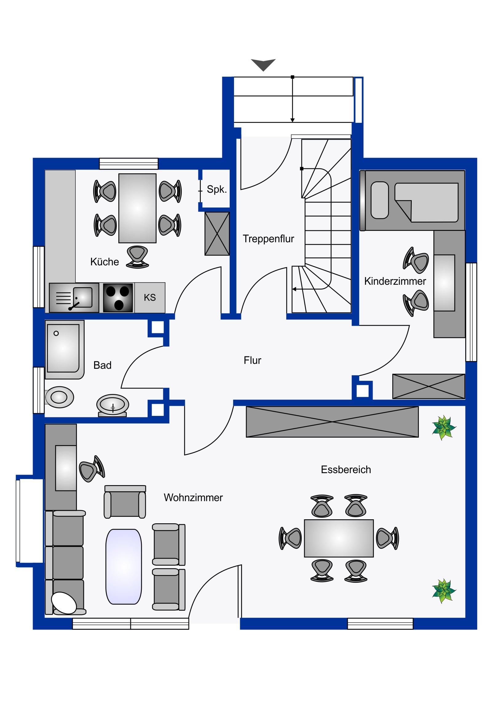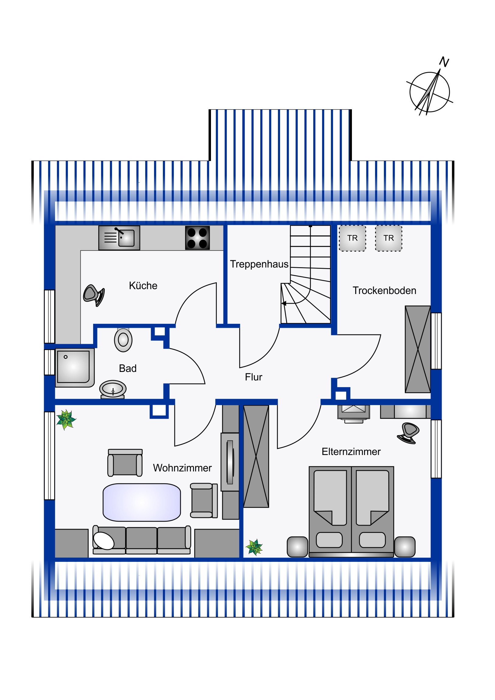 Der Innenbereich im Dachgeschoss (Einliegerwohnung):